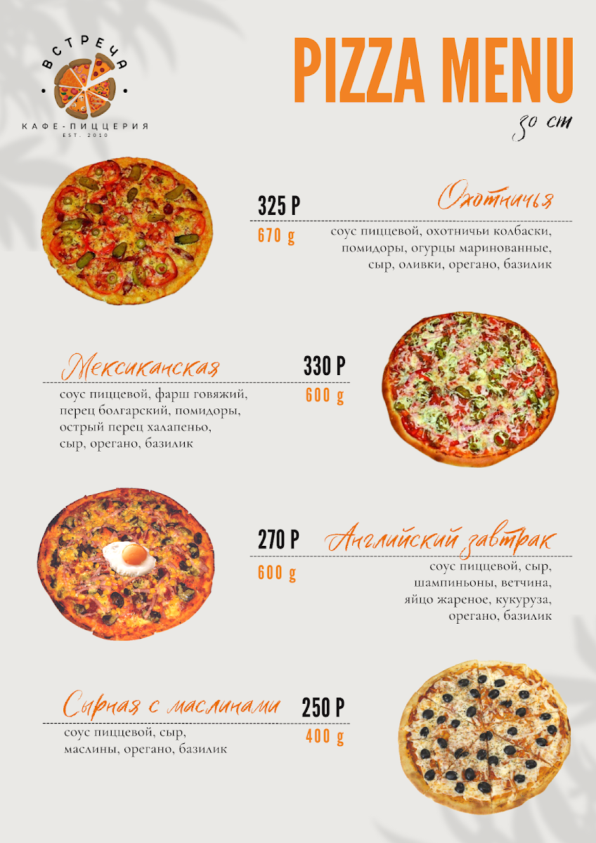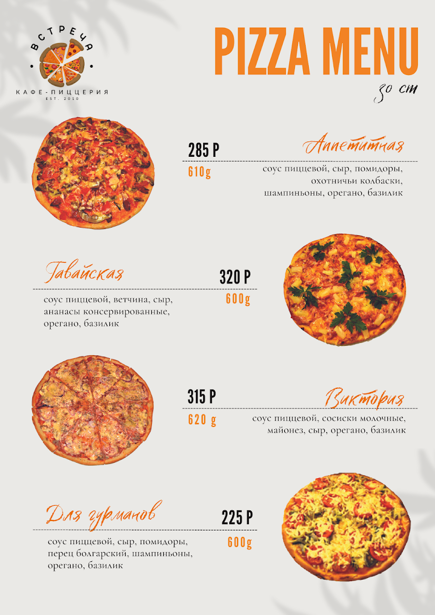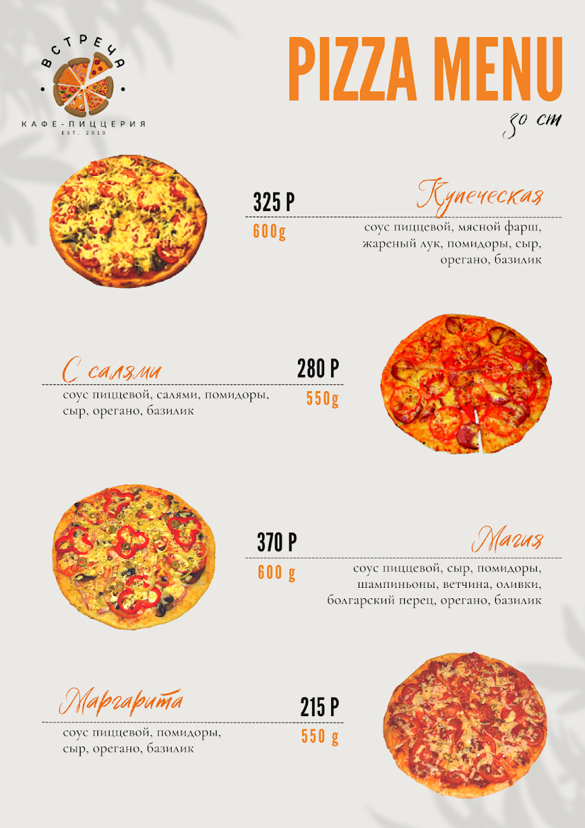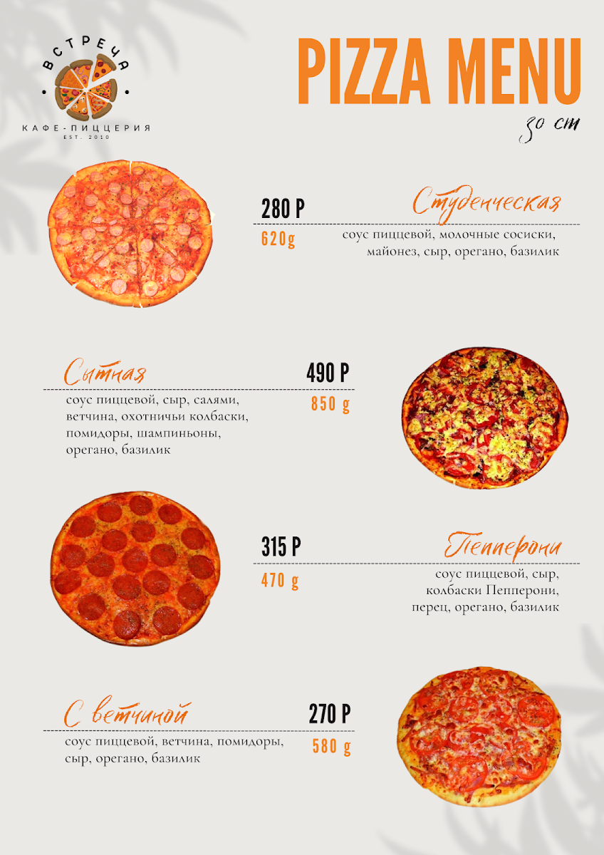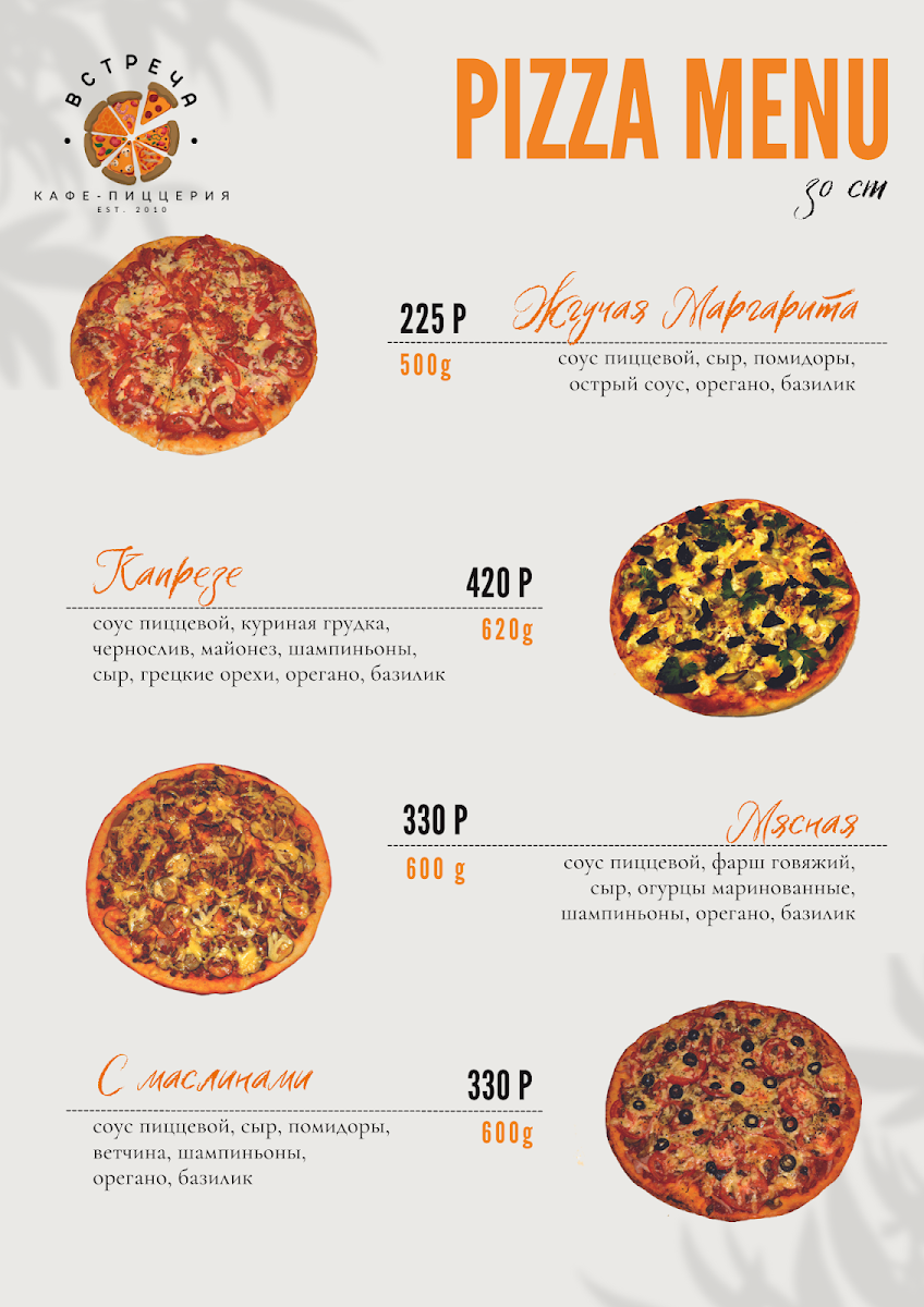 Kafe-Pitstseriya 'Vstrecha' Menu