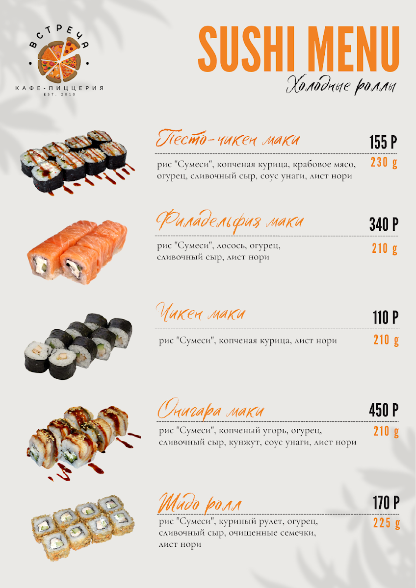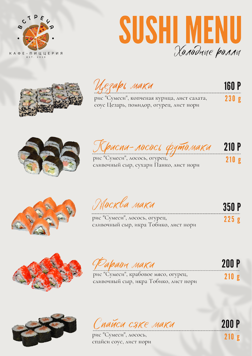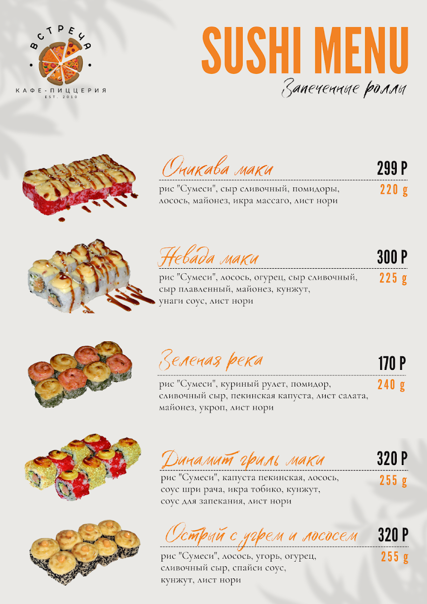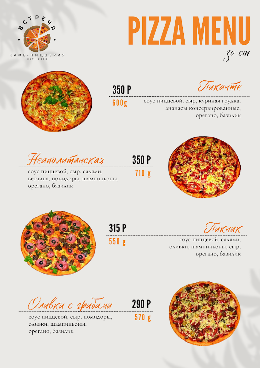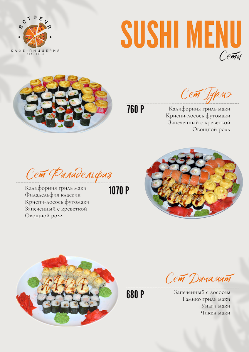 Kafe-Pitstseriya 'Vstrecha' Menu